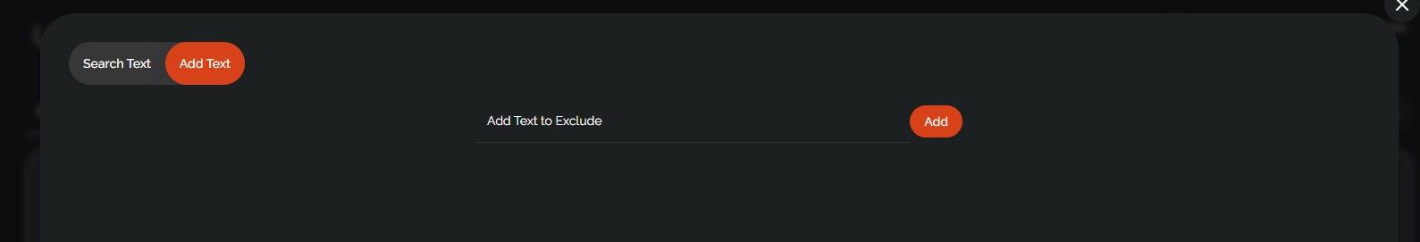 To exclude more words/phrases, click on the 'Add Text' tab and input your required exclusions.