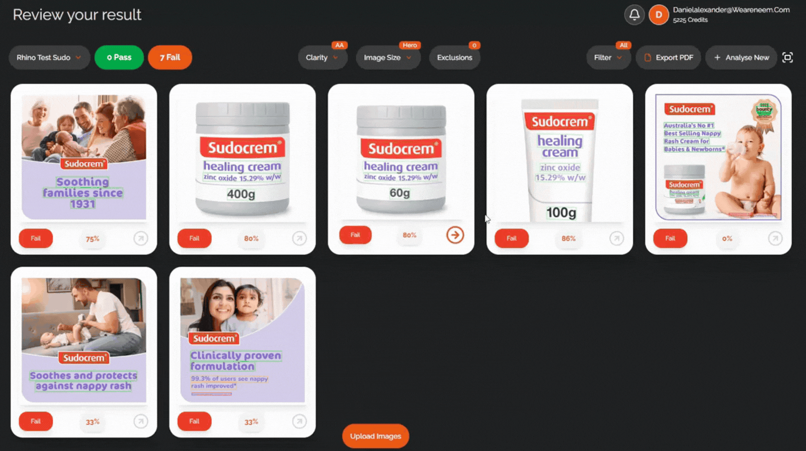 After analysis, you will be shown the results overview page. This shows all images in your project and whether or not they passed or failed. To view more detailed results for each image, just click on the image that you'd like to view.